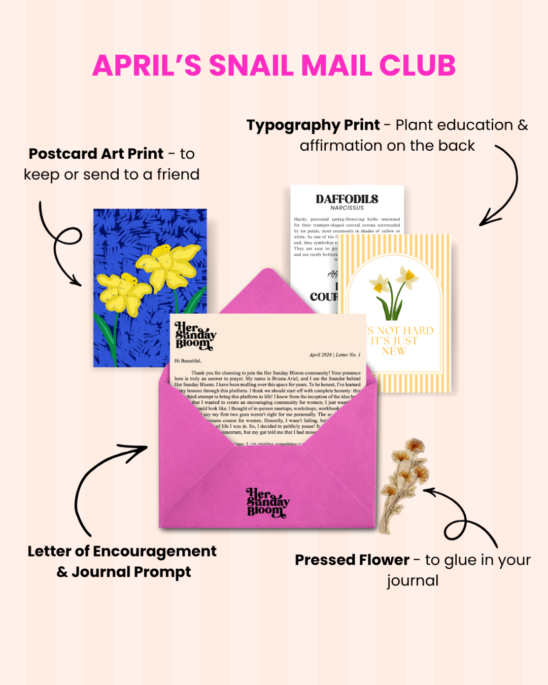 Her Sunday Bloom is a snail mail club and digital newsletter for women all over the world — created to encourage YOU to Bloom!