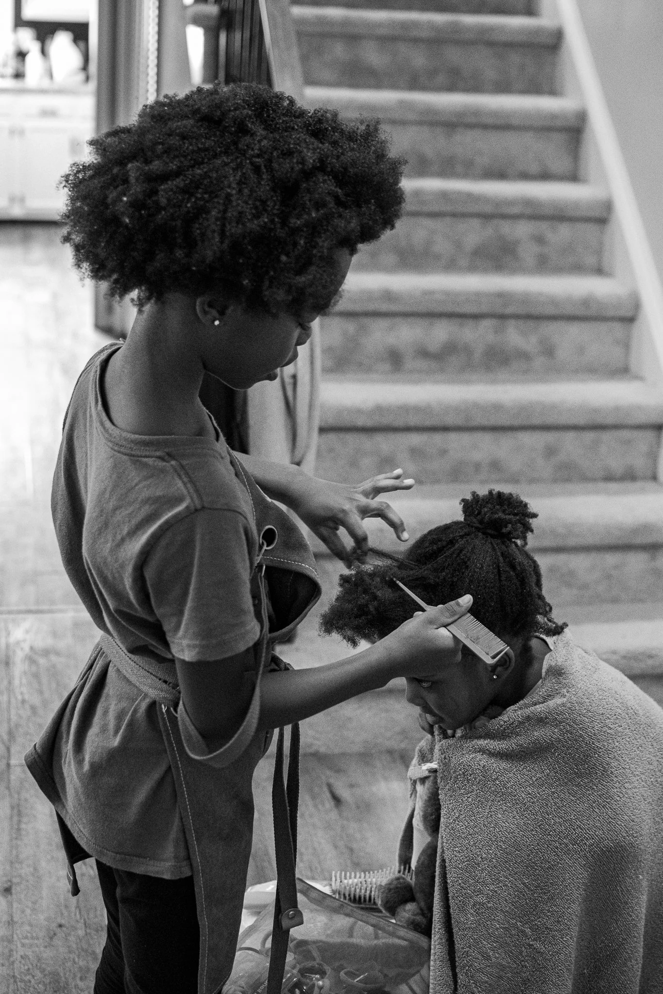 This is an image of my oldest daughter doing her little sisterโ€™s hair. This moment struck me as one I wanted to store in my heart forever.